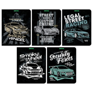 Тетрадь 48л Академия Машина (черный фон 5 видов) мел.картон, лак 14321/5 белизна 92%
