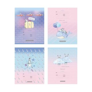 Тип скрепления – скоба. Тетради одного дизайна упакованы в термоусадочную пленку по 10 штук.