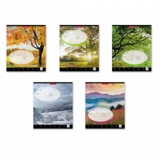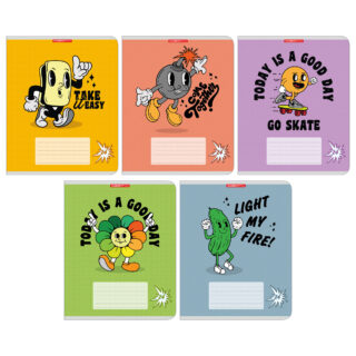 Скругленные уголки обложки и блока. Тип скрепления — скоба. Тетради упакованы в термоусадочную пленку по 10 штук.