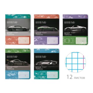 Тетрадь 12л клетка цвет/обложка Форсаж (5 видов) мел.бумага, ВДЛ Альт 7-12-474/1 белизна 100%