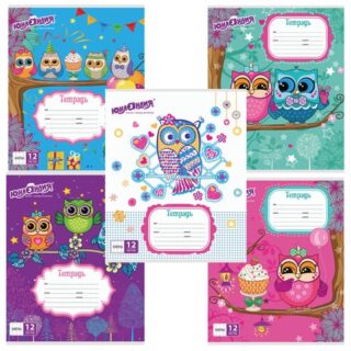 Тетрадь 12л клетка цвет/обложка Совята (5 видов) мел.карт. Юнландия 104918 белизна 100%