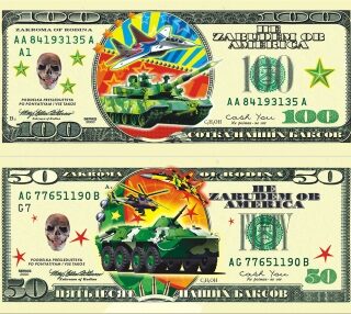 Закладка для книг бумажная Купюры Военная техника $ (1/100шт)