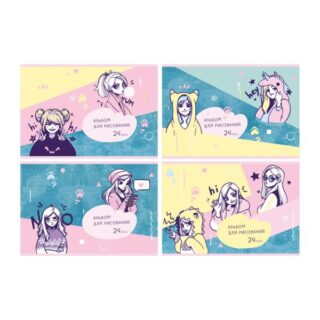 Альбом для рисования А4 24л БиДжи Привет-Привет! Анимэ (100гр) скрепка АР4ск24 10912 мел.картон