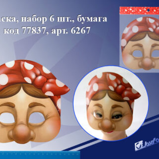 Маска карнавальная Бабушка в платочке, картон (1/6шт) 6267