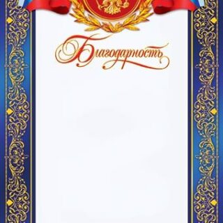 Благодарность для принтера А4 Герб, флаг РФ, синяя рамка 9-19-008