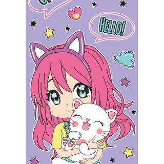 Открытка-конверт Аниме. Девочка с котом 1-04-0406 детская, вертик.