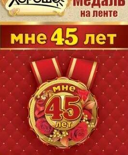 Медаль металл на ленте Мне 45 лет 5,6см цвет красный на блистере 15.11.00129
