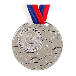 Медаль металл на ленте 2 место! 5 см, триколор 001 835340
