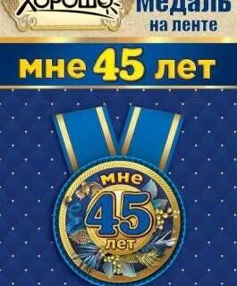 Медаль металл на ленте Мне 45 лет 5,6см цвет синий на блистере 15.11.00130