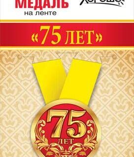 Медаль металл на ленте Мне 75 лет 5,6см на блистере 15.11.01363