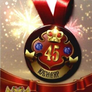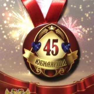 Медаль металл на ленте Юбилярша 45лет 7,5см ZMET00011/5630