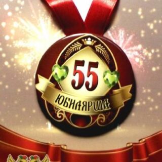 Медаль металл на ленте Юбилярша 55лет 7,5см ZMET00013/5654