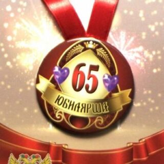 Медаль металл на ленте Юбилярша 65лет 7,5см ZMET00015/5678