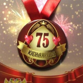 Медаль металл на ленте Юбилярша 75лет 7,5см ZMET00017/5692
