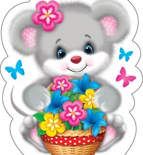Открытка-мини фигурная Мышка с букетом 4-32-8033