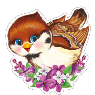 Плакат для оформления А5 Воробушек с цветочками, фигурный с блестками ФМ-13252