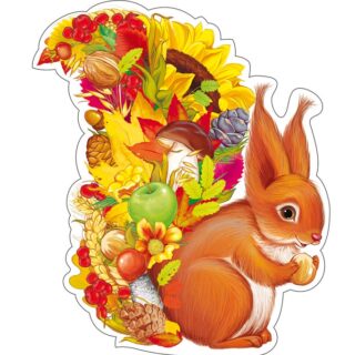 Плакат для оформления А5 Белочка с осенним урожаем, фигурный с блестками Сфера ФМ-13938