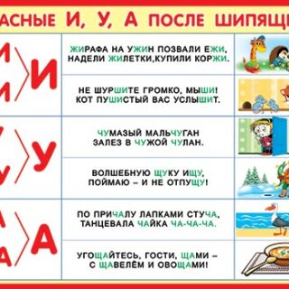Плакат обучающий А2 Гласные И, У, А после шипящих (70*50см) 0-02-322(122)