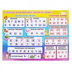 Плакат обучающий А2 Гласные и согласные звуки и буквы Алфея 200005