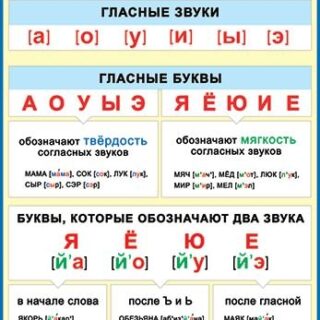 Плакат обучающий А2 Гласные звуки и буквы русского языка 0-02-296 (167)