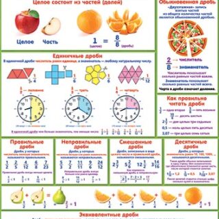 Плакат обучающий А2 Дроби. Части и целое. 0-30-035 (131)