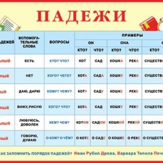 Плакат обучающий А2 Падежи (70*50см) 0-02-292