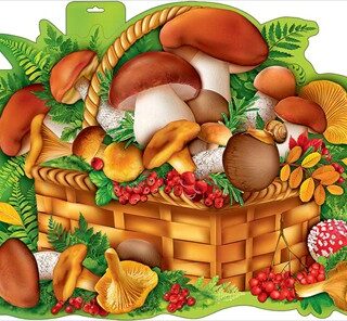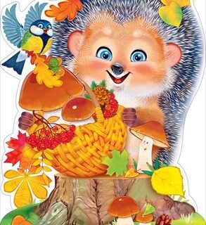 Плакат для оформления А2 Ежик на пеньке с грибочками, фигурный 84.416