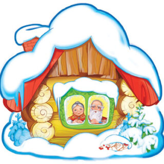 Плакат для оформления А3 Деревенская изба зимою, фигурный Ф-11264