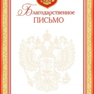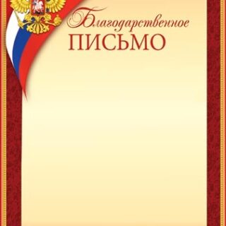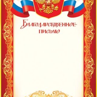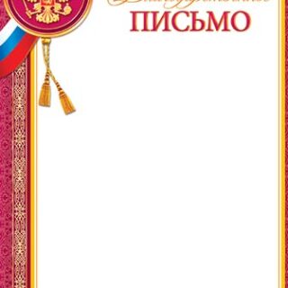 Благодарственное письмо для принтера А4 Герб, флаг РФ, красная рамка 9-19-350