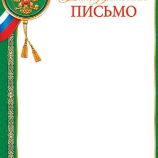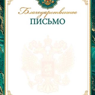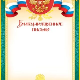 Благодарственное письмо для принтера А4 Герб, флаг РФ, зеленая рамка 9-19-286
