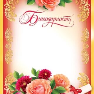 Благодарность для принтера А4 Цветы, красная рамка с узором 9-19-041