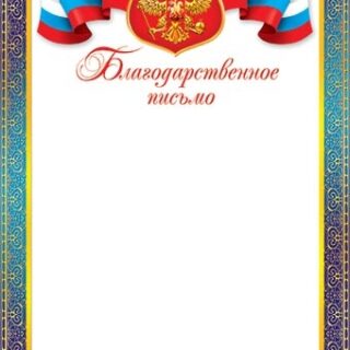 Благодарственное письмо для принтера А4 Герб, флаг РФ, сине-голубая рамка 9-19-152