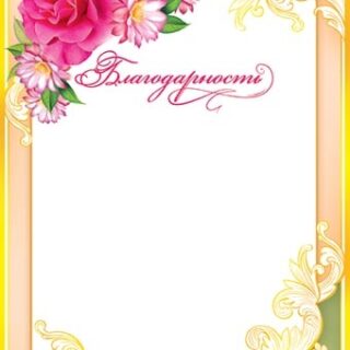 Благодарность для принтера А4 Цветы, розовая рамка 9-19-059