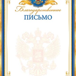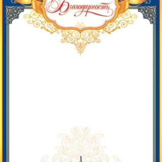 Благодарственное письмо для принтера А4 Герб РФ, желто-синяя рамка 9-19-329