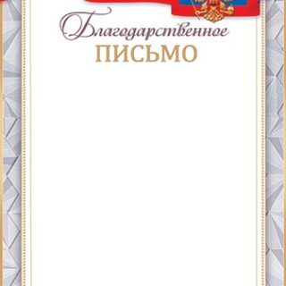 Благодарственное письмо для принтера А4 Герб, флаг РФ, серая рамка 9-19-618