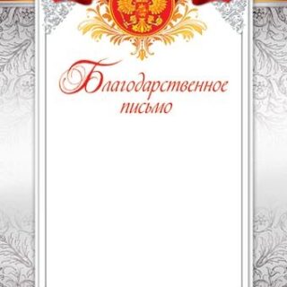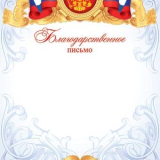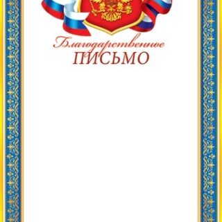 Благодарственное письмо для принтера А4 Герб, флаг РФ, синие поля с узором 9-19-032