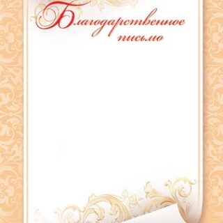 Благодарственное письмо для принтера А4 Узор, бежевая рамка 9-19-181