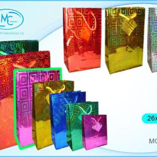 Пакет подарочный бумага 32*26см Голография МС-1434