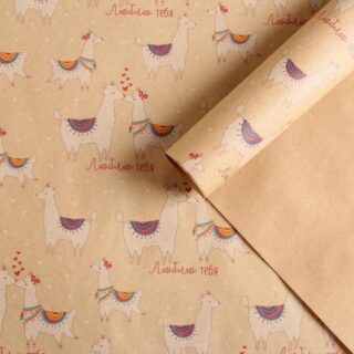 Бумага упаковочная 50*70см крафт Влюбленные ламы 5351658