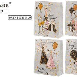 Пакет подарочный бумага 23,5*19,5см Happy Birthday Basir МС-6089 плотный