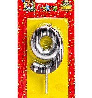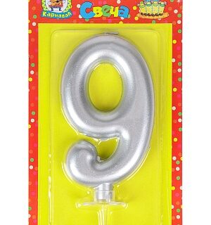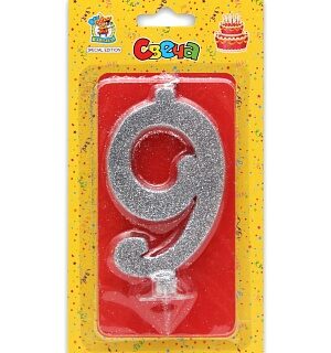 Свеча Цифра (9) Серебро металлик большая на блистере Дон карнавал С-1881