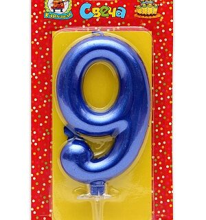 Свеча Цифра (9) Синий металлик большая на блистере Дон карнавал С-1851