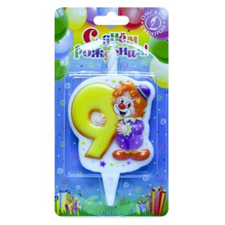 Свеча Цифра (9) С Днем рождения! клоун, на блистере 2989