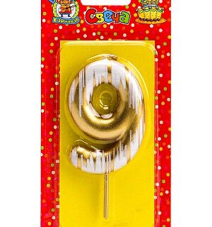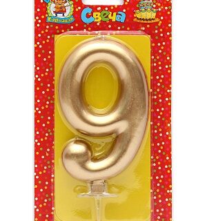 Свеча Цифра (9) Золотой металлик большая на блистере Дон карнавал С-1871