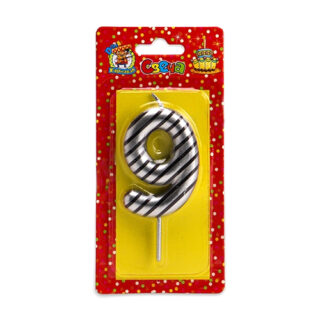 Свеча Цифра (9) Серебро в черную полоску на блистере Дон Карнавал С-2528