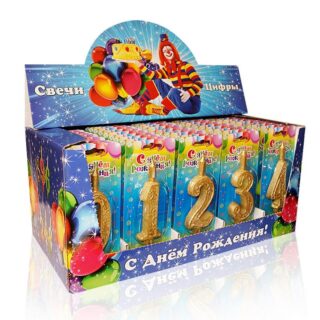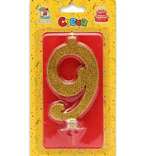 Свеча Цифра (9) Золотой глиттер с окантовкой на блистере Дон карнавал С-5983
