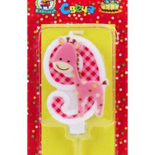 Свеча Цифра (9) Жирафик розовый на блистере Дон Карнавал С-8323
