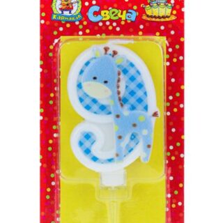 Свеча Цифра (9) Жирафик синий на блистере Дон Карнавал С-8313