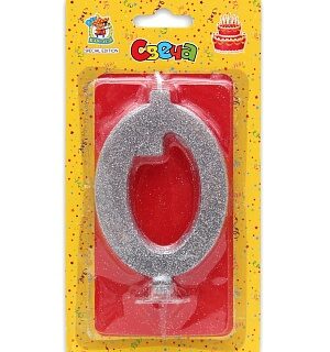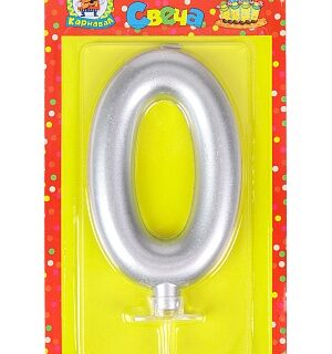 Свеча Цифра (0) Серебро металлик большая на блистере Дон карнавал С-1872