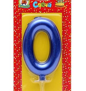 Свеча Цифра (0) Синий металлик большая на блистере Дон карнавал С-1842